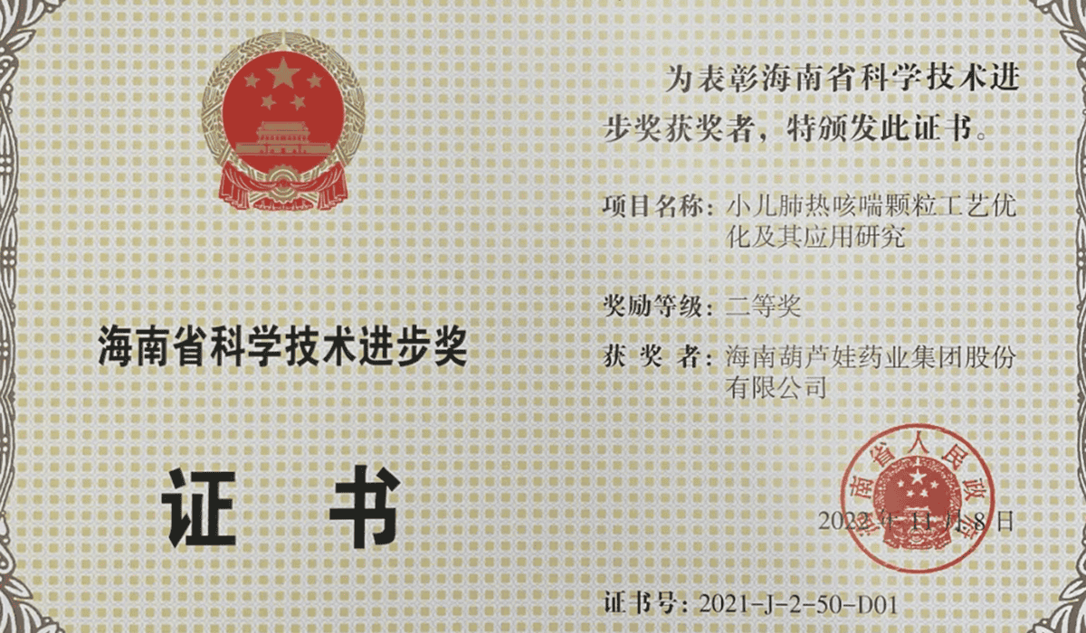“克咳片及其制备方法” 斩获海南省专利奖金奖